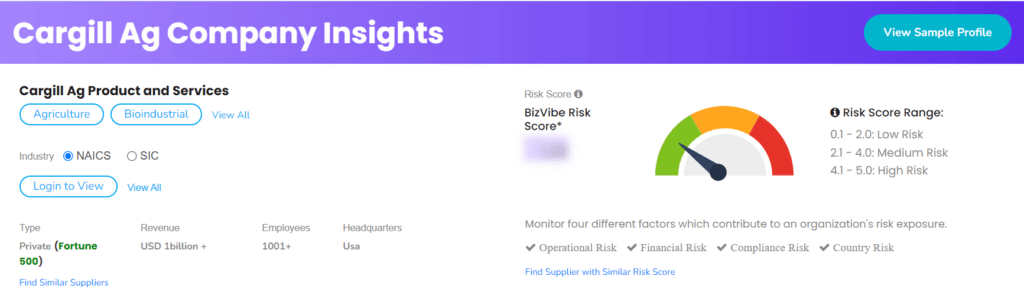 BizVibe平台帮助企业发现、跟踪、评估、和连接成千上万的公共和私人农业公司,包括嘉吉等公司。对于每一个公司简介,用户可以访问一流供应商情报突出关键产品和服务,经营的风险,行业机会,关键高管信息,竞争对手的见解,和更多。