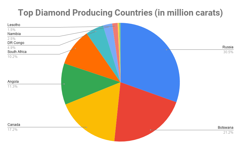 谁是世界上十大钻石生产国的2020 ?下面列出主要的钻石生产国排名由去年的克拉的钻石生产。